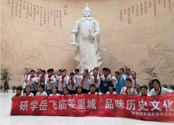 为认真贯彻落实教育部《关于推进中小学研学旅行意见》,坚持以人为本,德育为先,帮助中小学生了解国情,热爱祖国,开阔眼界,增长知识,提高他们的社会责任感,创新精神。我们鹤翔小学于2019 年 7 月 10日组织三年级部分学生和两名家长代表开展了 “研学岳飞庙羑里城,品味历史厚重文化”的暑期研学活动,这次活动有长渠教育培训中心精心策划,周密安排,同时得到了家长的大力支持。